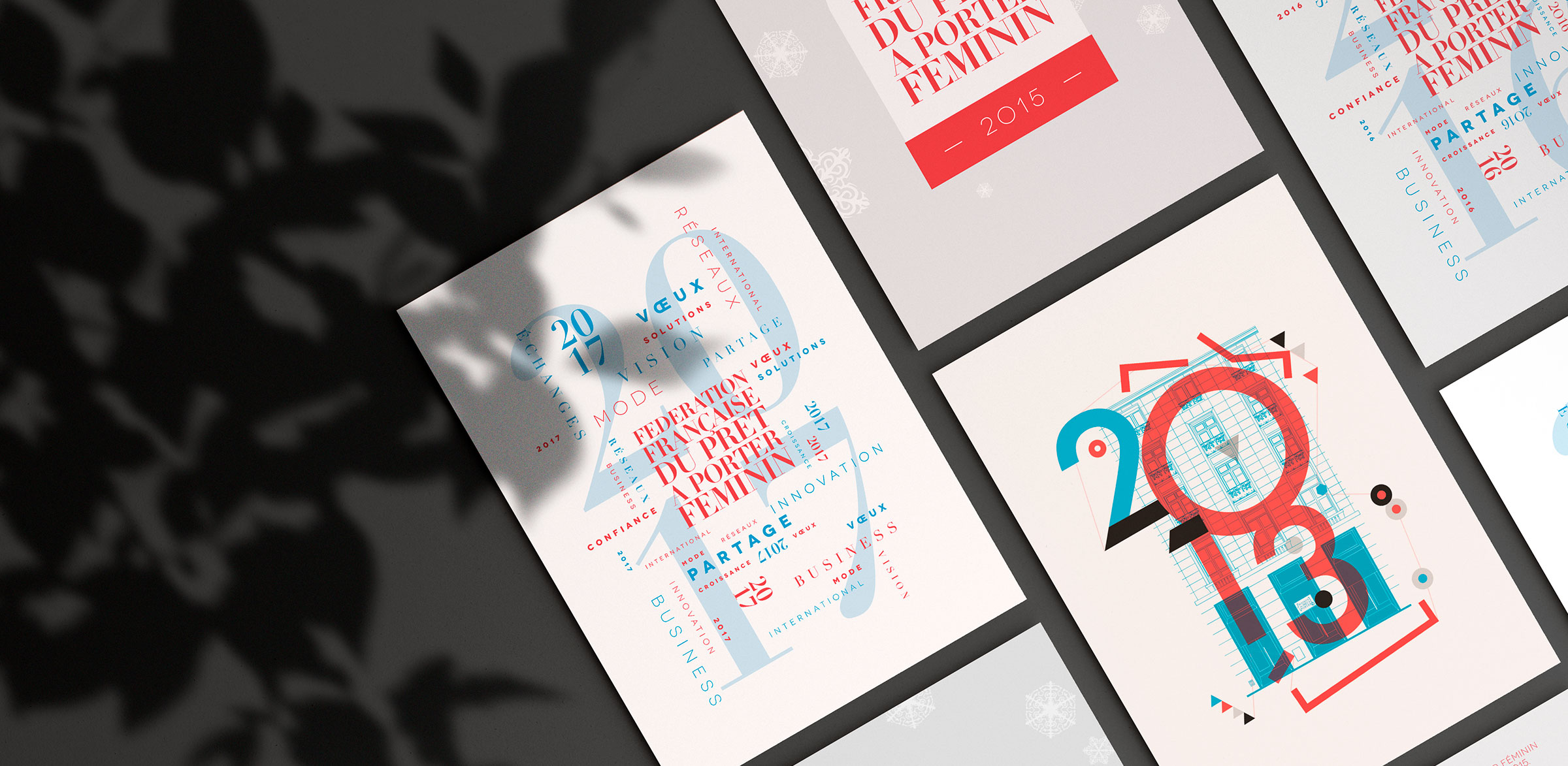 Design de la carte de voeux de la Fédération Française de Prêt à Porter Féminin de 2013 à 2017.