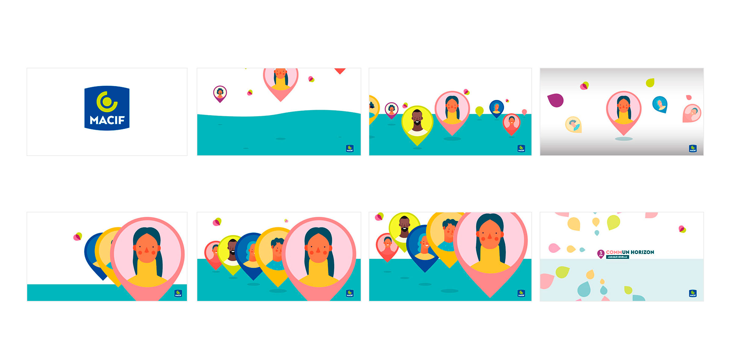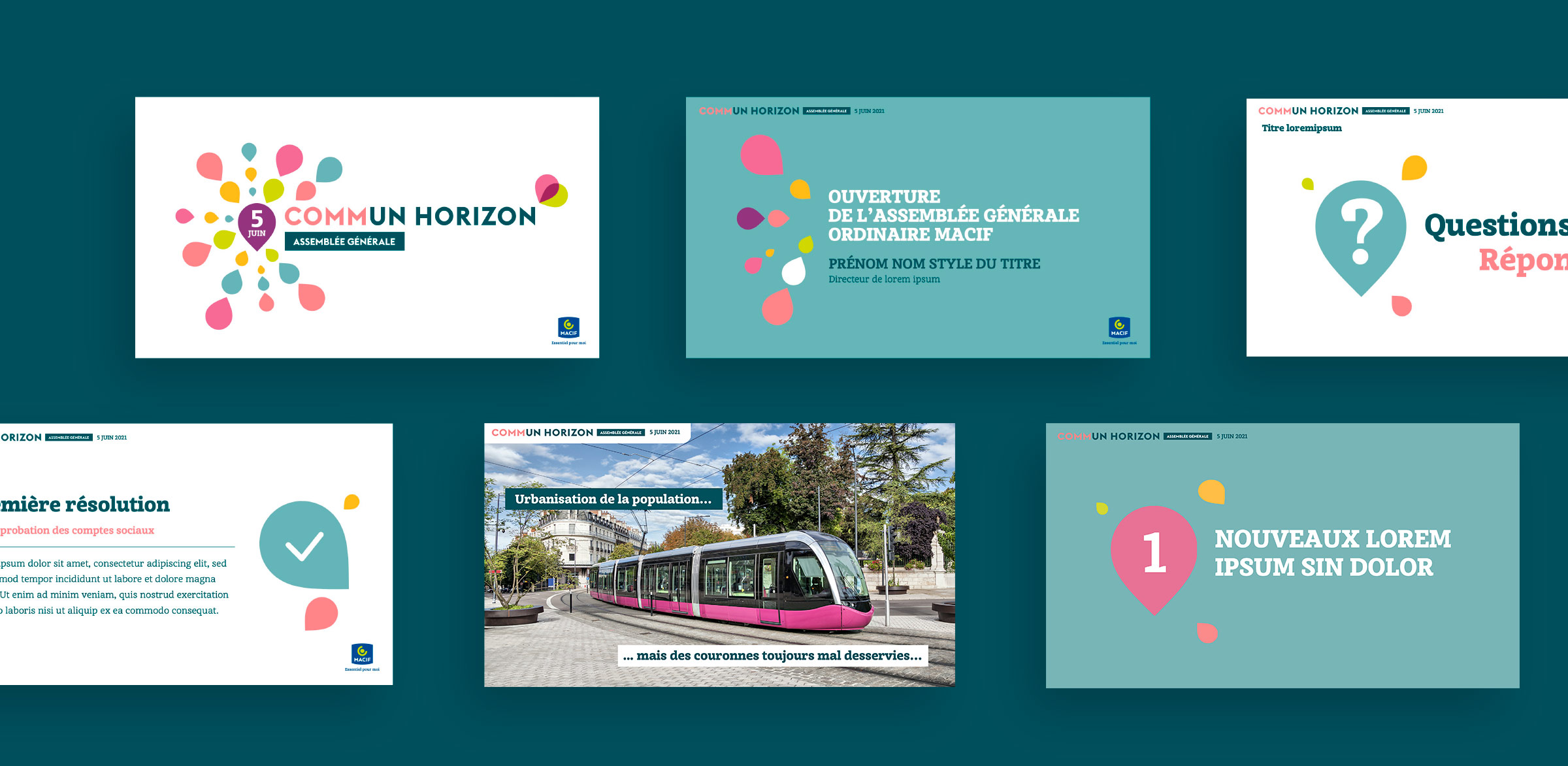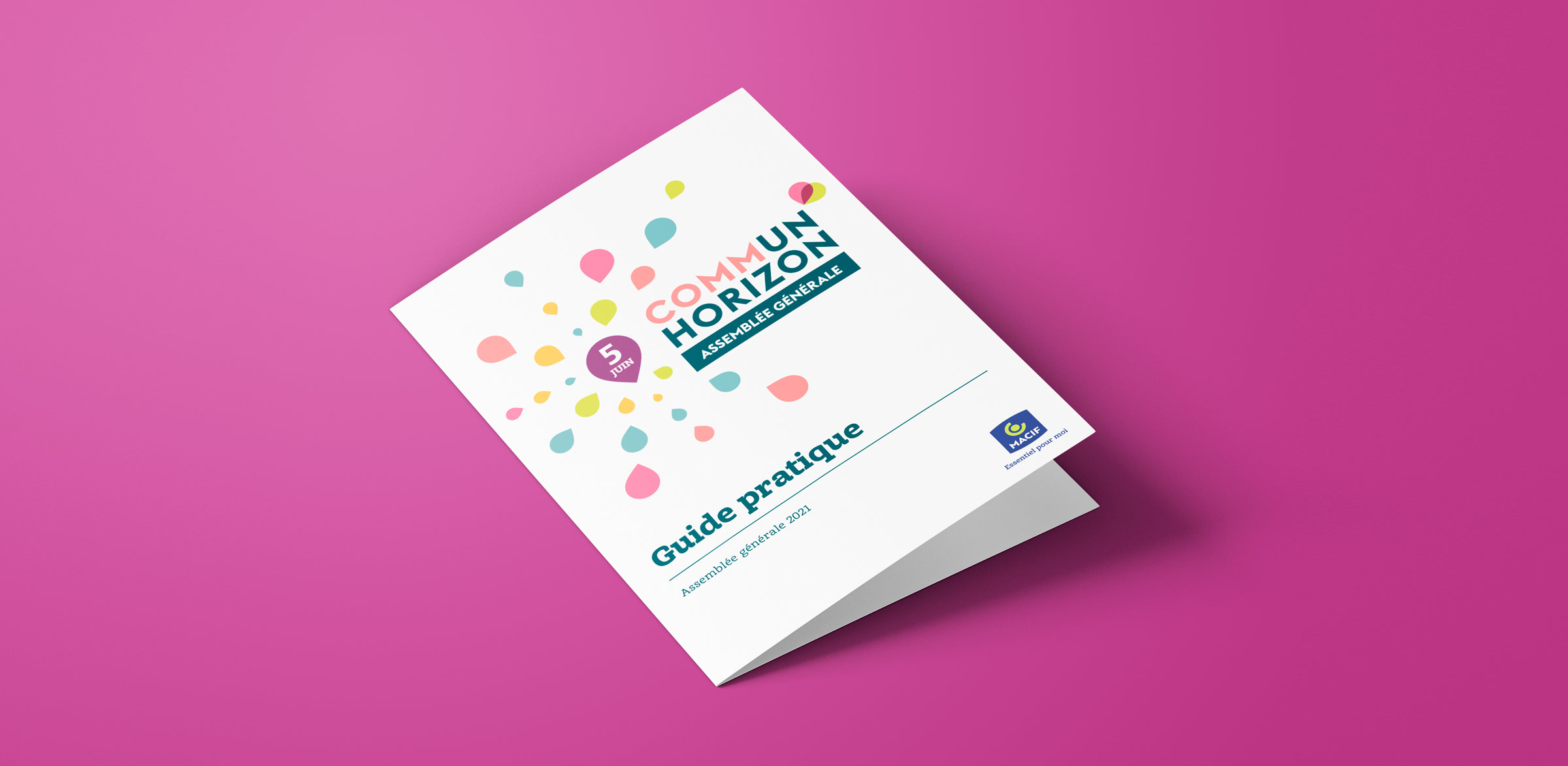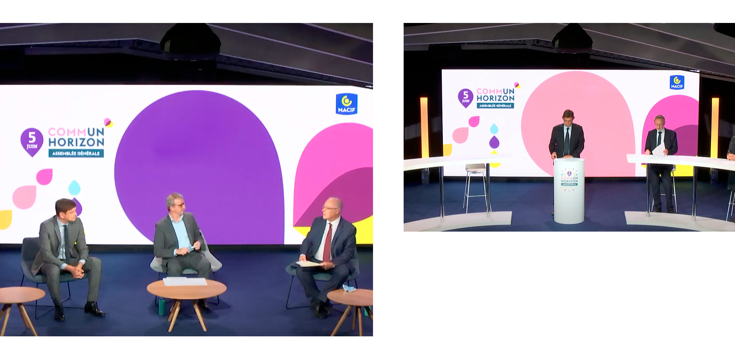 Design de supports de communication pour l’Assemblée Générale de la Macif en distanciel. Direction