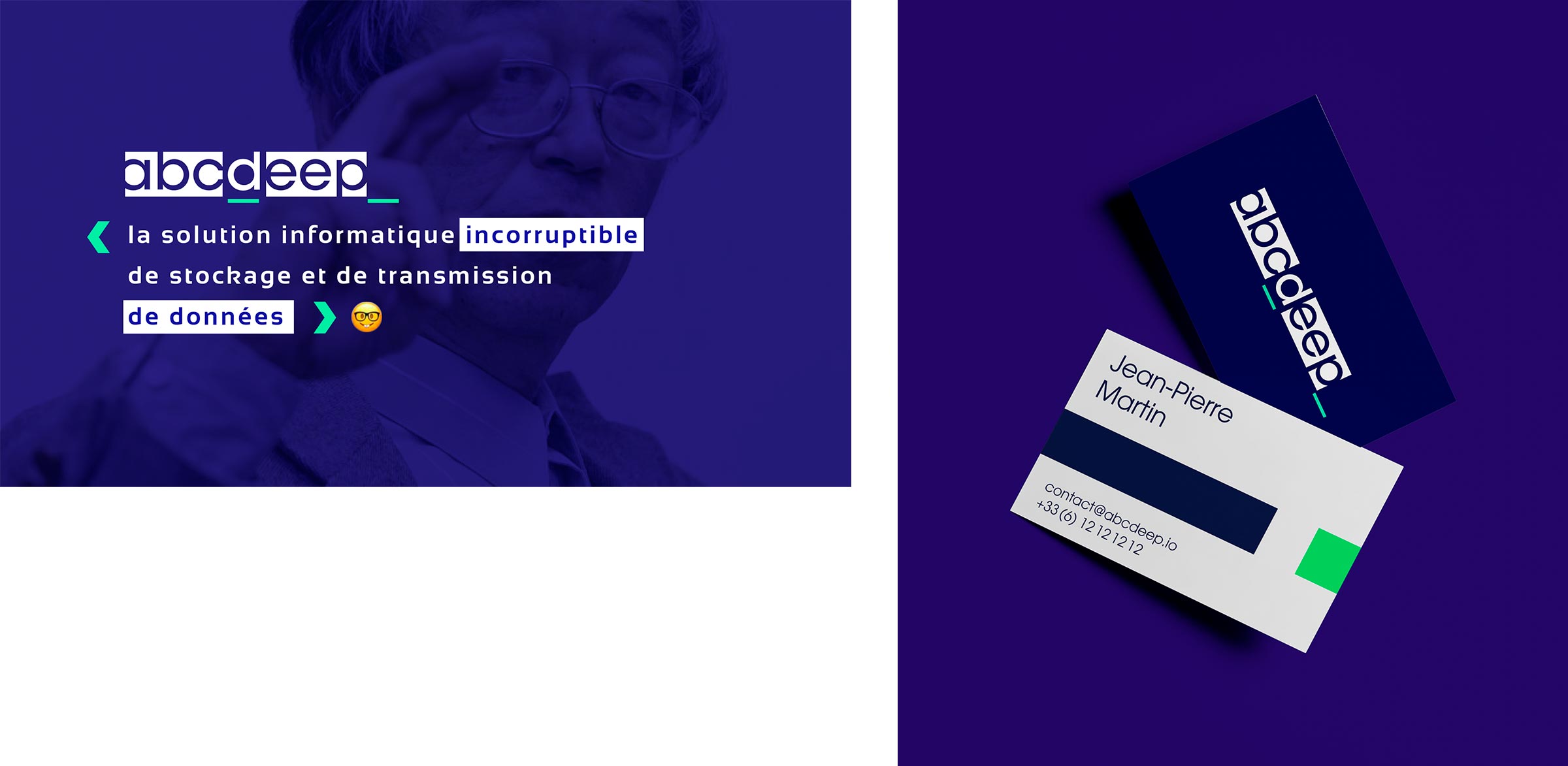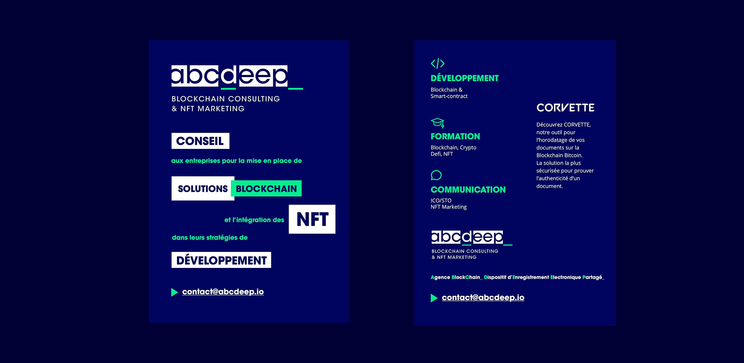 Réalisation de l’identité de ABCDEEP, l'offre conseil en blockchain de l'agence SLOOP. Le logo reprend dans sa forme le principe de blocs de données.